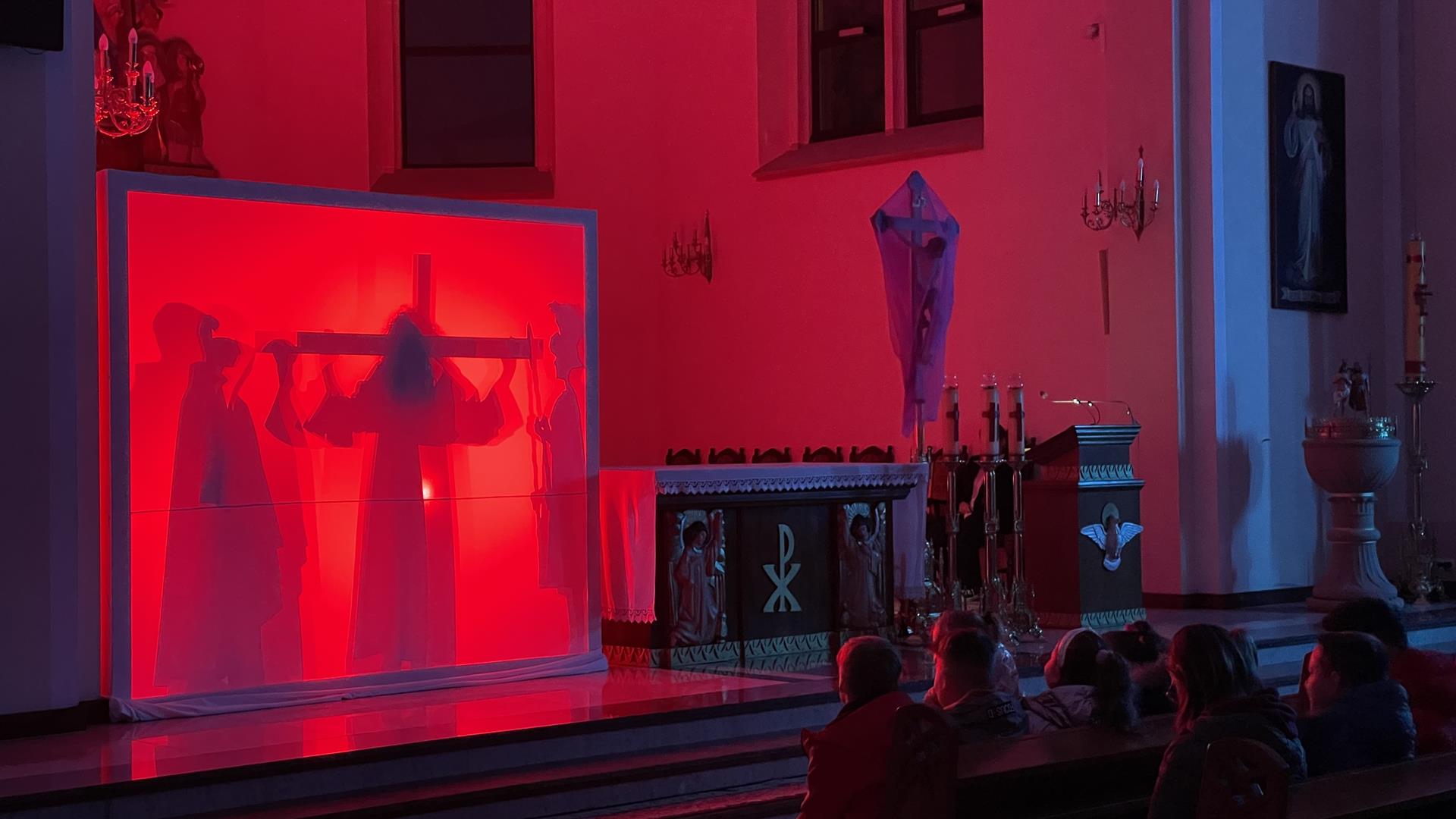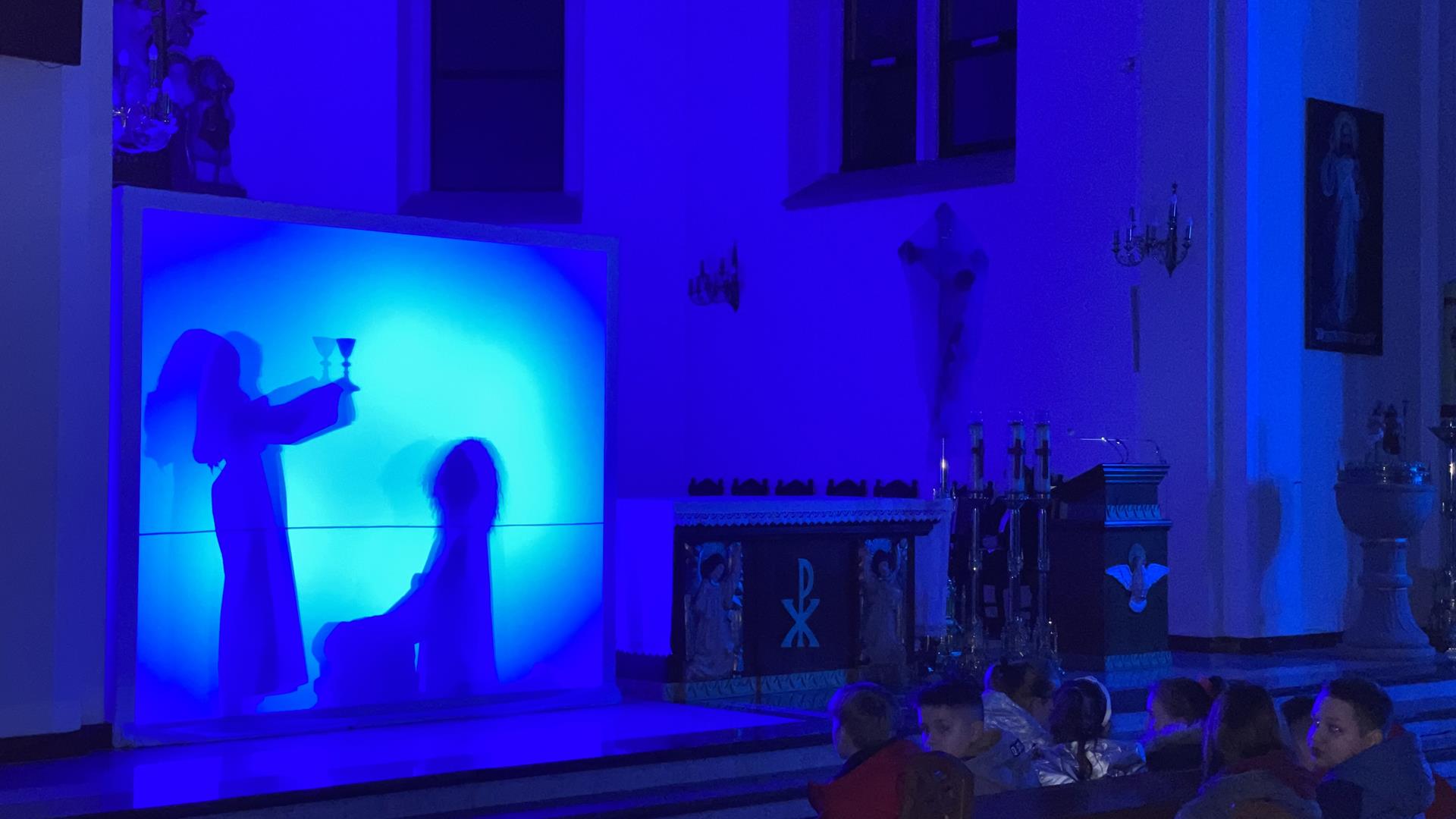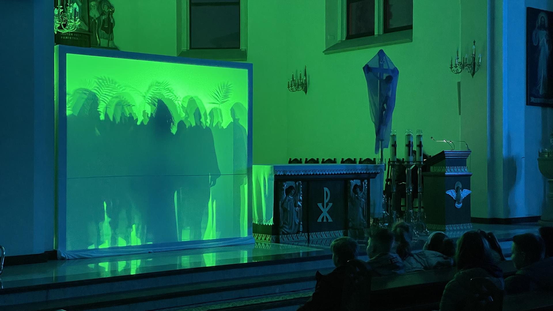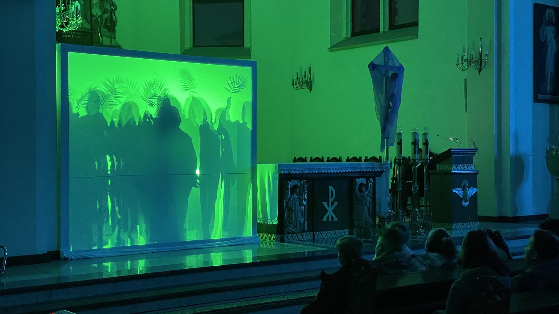 W piątkowy wieczór przed Niedzielą Palmową mogliśmy w naszym kościele obejrzeć misterium przedstawiające historię zbawienia od grzechu pierworodnego aż do Zmartychwstania Jezusa. Młodzież naszej parafii przedstawiła zbawcze wydarzenia przy pomocy teatru cieni przy akompaniamencie chóru TU DOMINE wykonującemu pieśni pasyjne. Obsługę światła zapewnił DJ Marshall SHOW Michał Marszał.