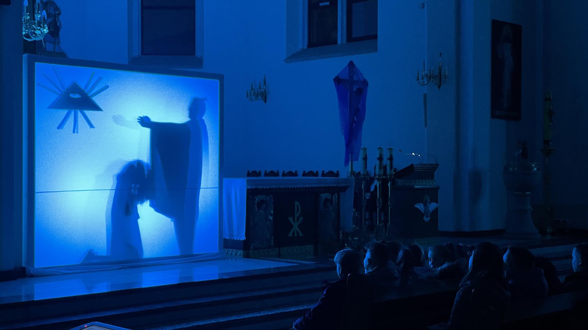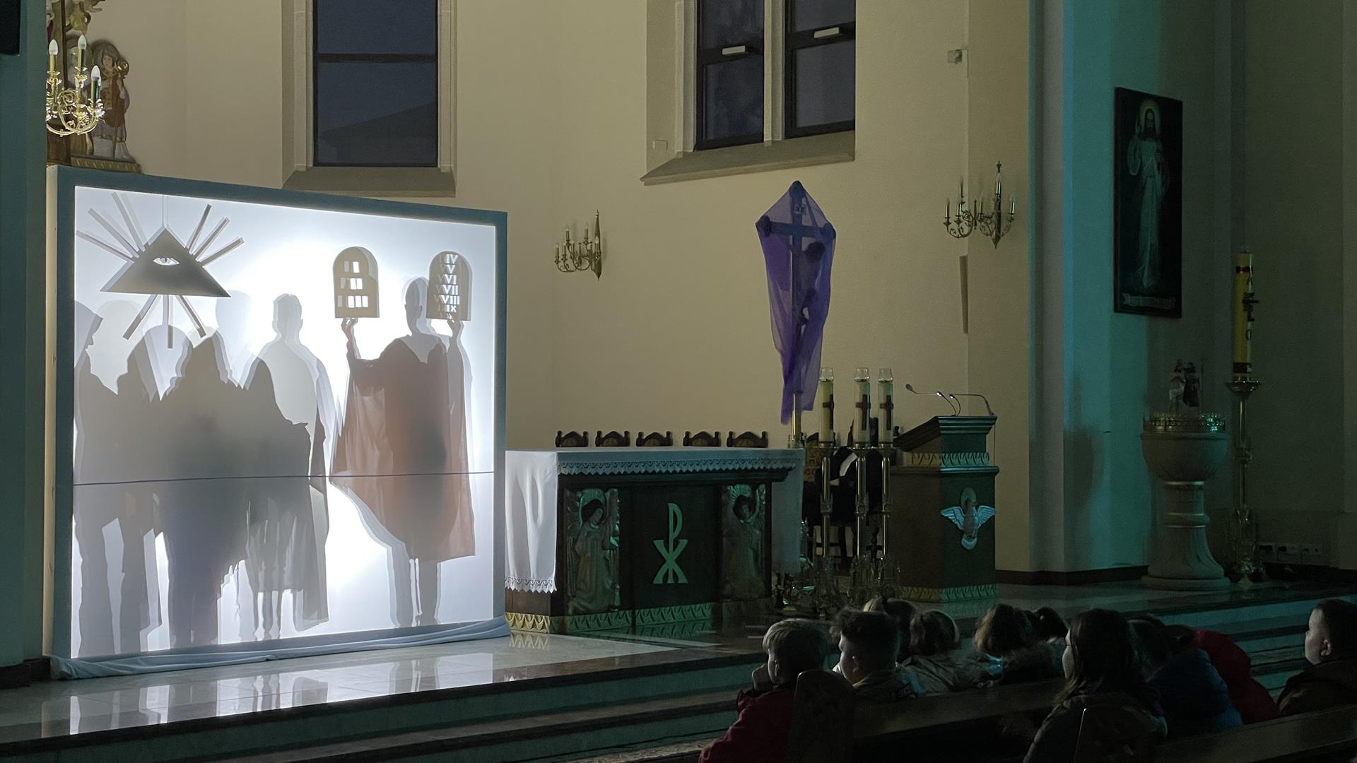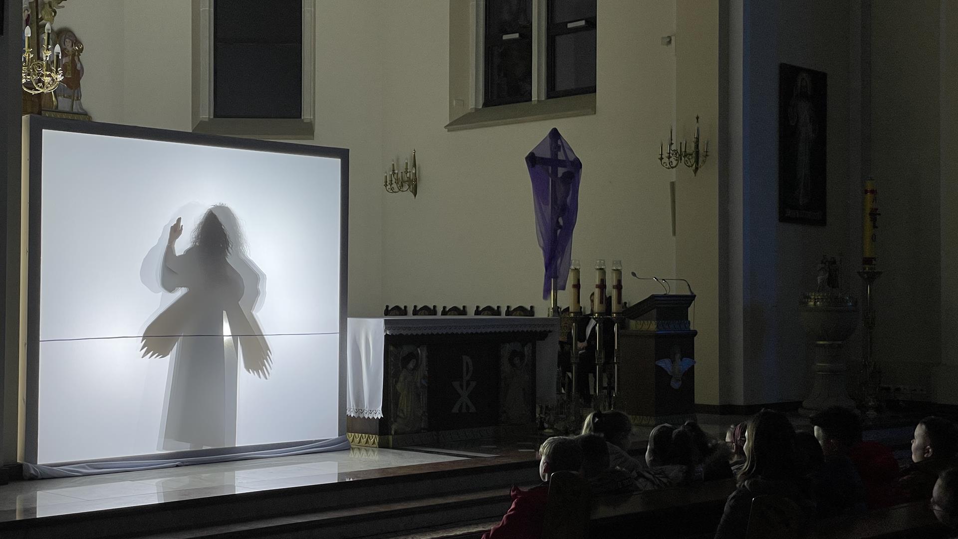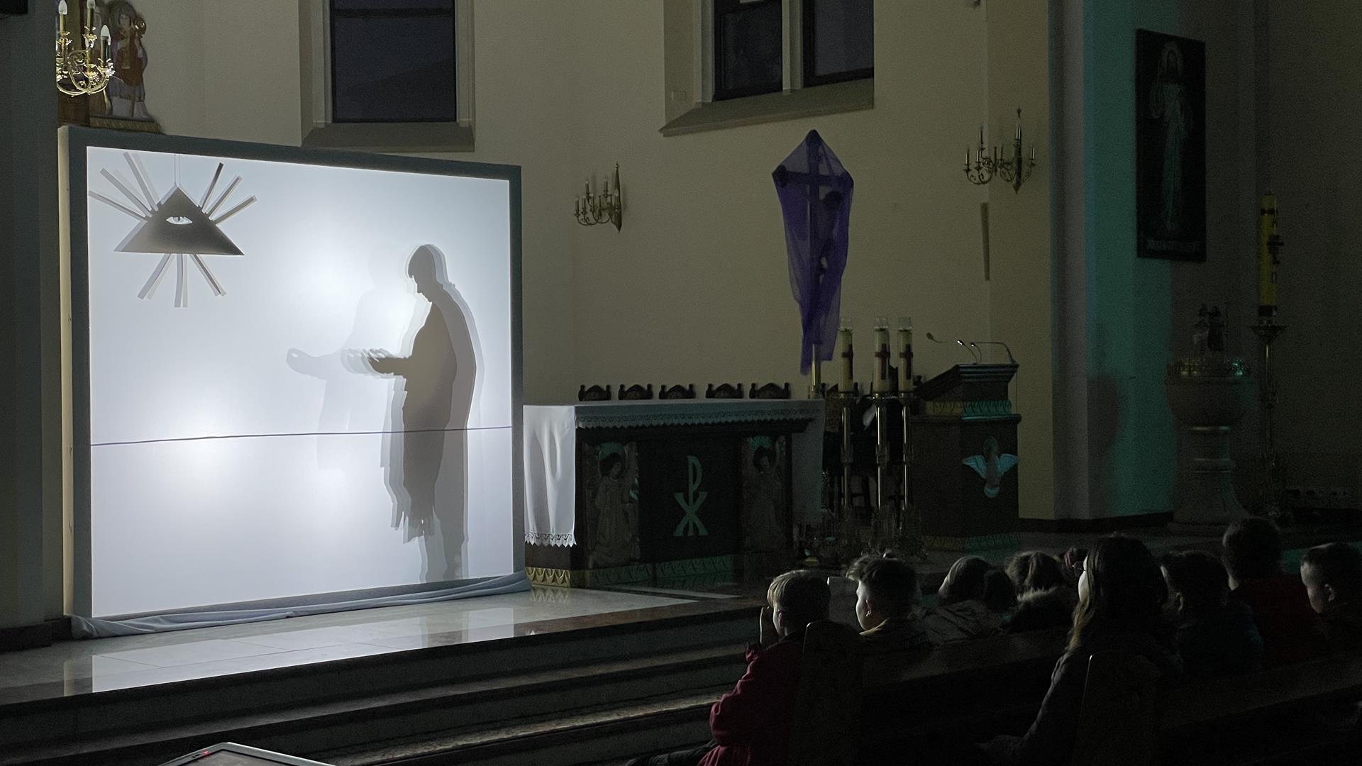 W piątkowy wieczór przed Niedzielą Palmową mogliśmy w naszym kościele obejrzeć misterium przedstawiające historię zbawienia od grzechu pierworodnego aż do Zmartychwstania Jezusa. Młodzież naszej parafii przedstawiła zbawcze wydarzenia przy pomocy teatru cieni przy akompaniamencie chóru TU DOMINE wykonującemu pieśni pasyjne. Obsługę światła zapewnił DJ Marshall SHOW Michał Marszał.