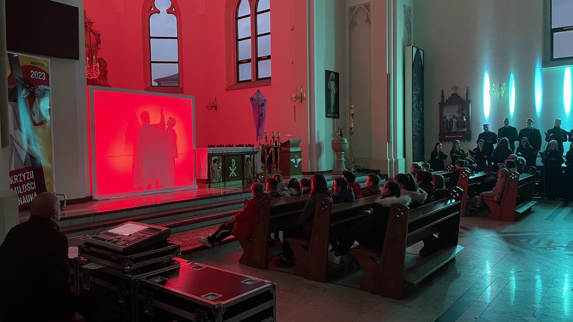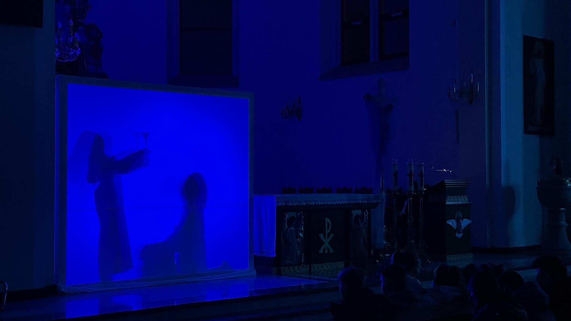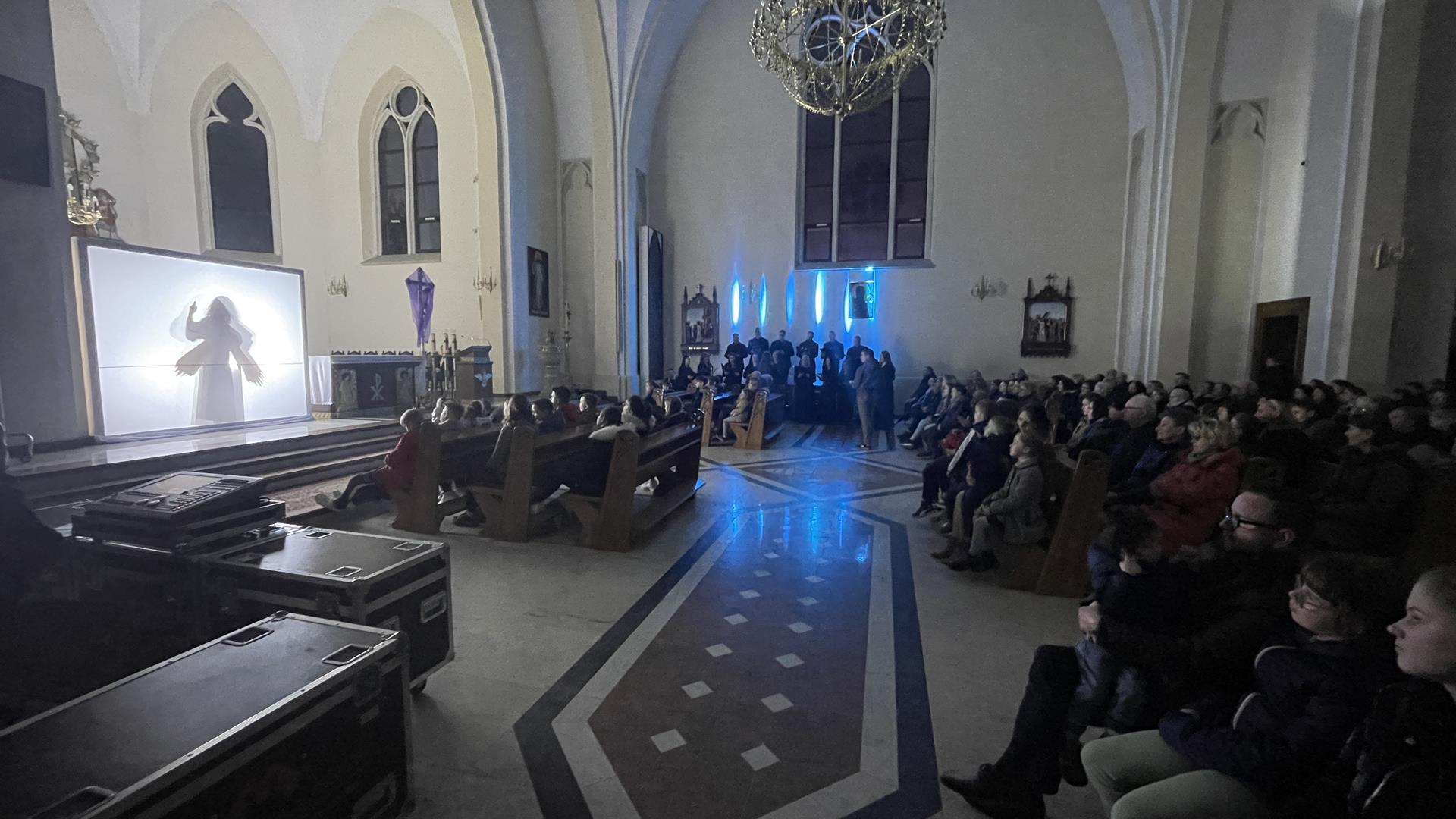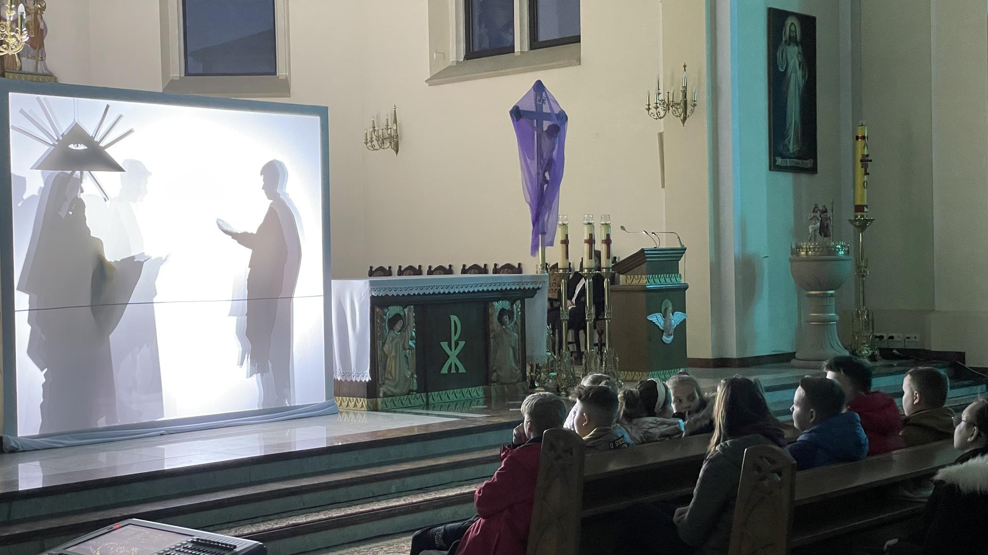 W piątkowy wieczór przed Niedzielą Palmową mogliśmy w naszym kościele obejrzeć misterium przedstawiające historię zbawienia od grzechu pierworodnego aż do Zmartychwstania Jezusa. Młodzież naszej parafii przedstawiła zbawcze wydarzenia przy pomocy teatru cieni przy akompaniamencie chóru TU DOMINE wykonującemu pieśni pasyjne. Obsługę światła zapewnił DJ Marshall SHOW Michał Marszał.