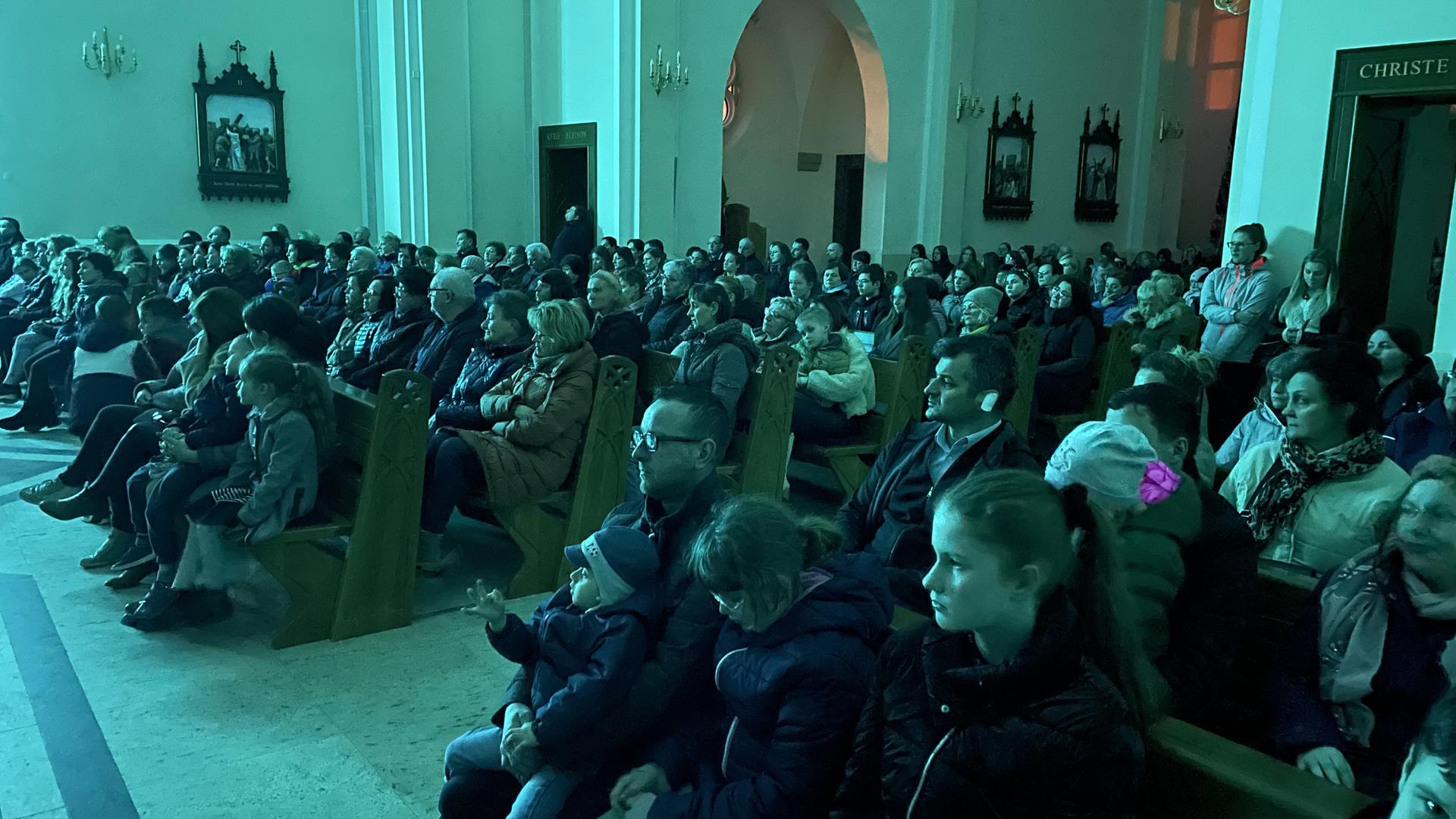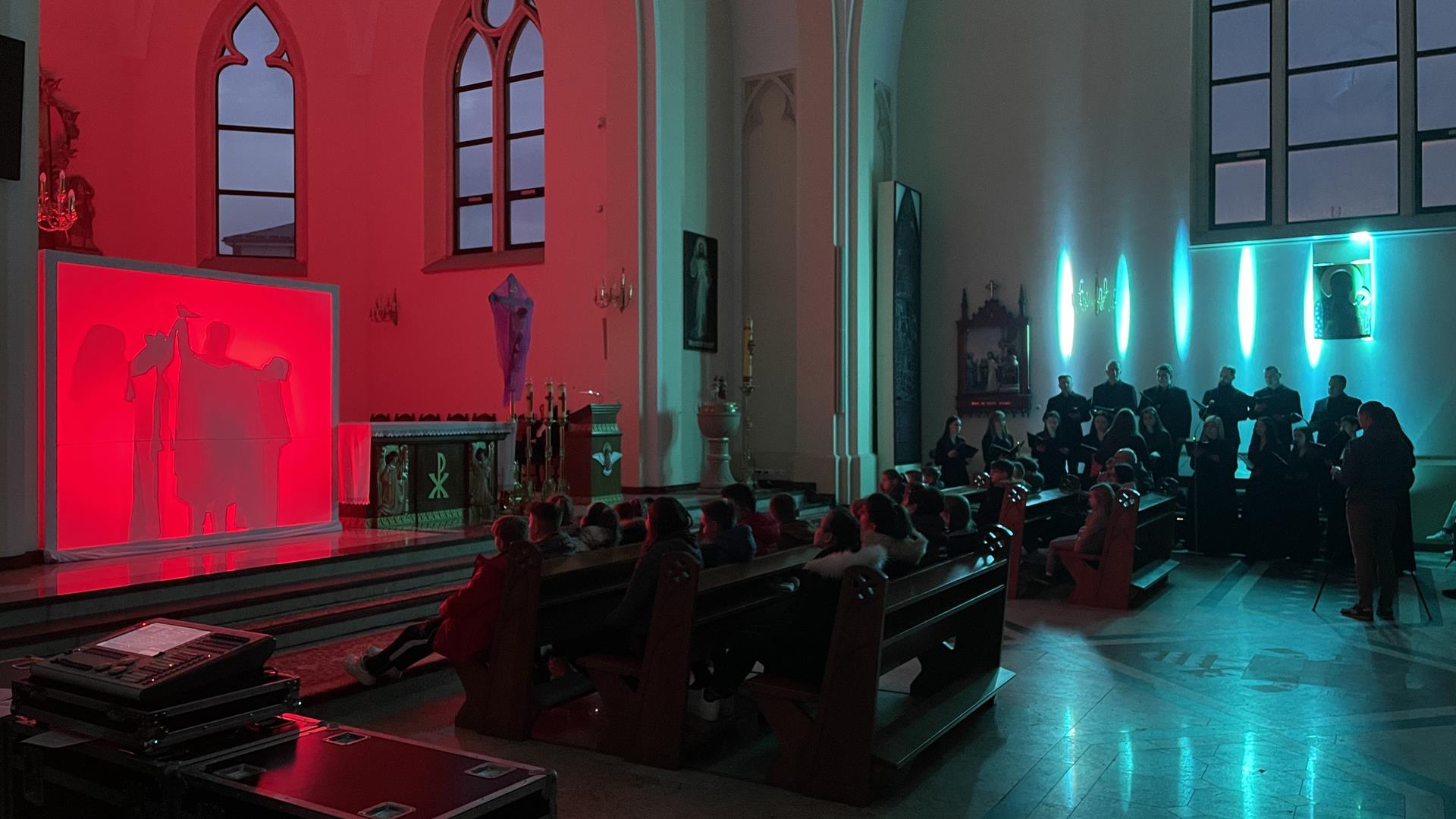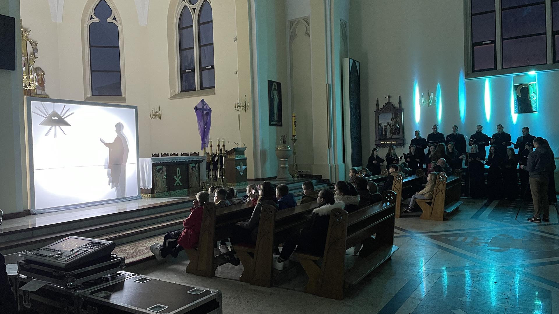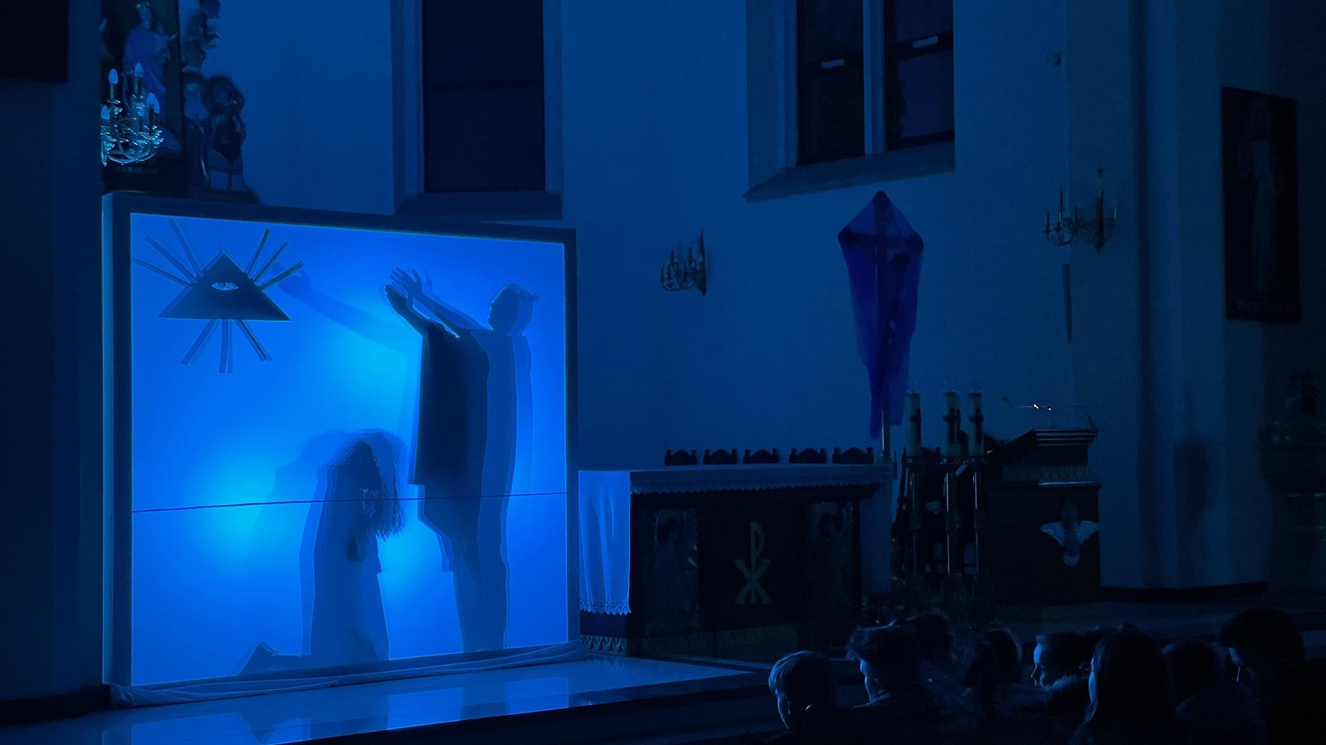 W piątkowy wieczór przed Niedzielą Palmową mogliśmy w naszym kościele obejrzeć misterium przedstawiające historię zbawienia od grzechu pierworodnego aż do Zmartychwstania Jezusa. Młodzież naszej parafii przedstawiła zbawcze wydarzenia przy pomocy teatru cieni przy akompaniamencie chóru TU DOMINE wykonującemu pieśni pasyjne. Obsługę światła zapewnił DJ Marshall SHOW Michał Marszał.