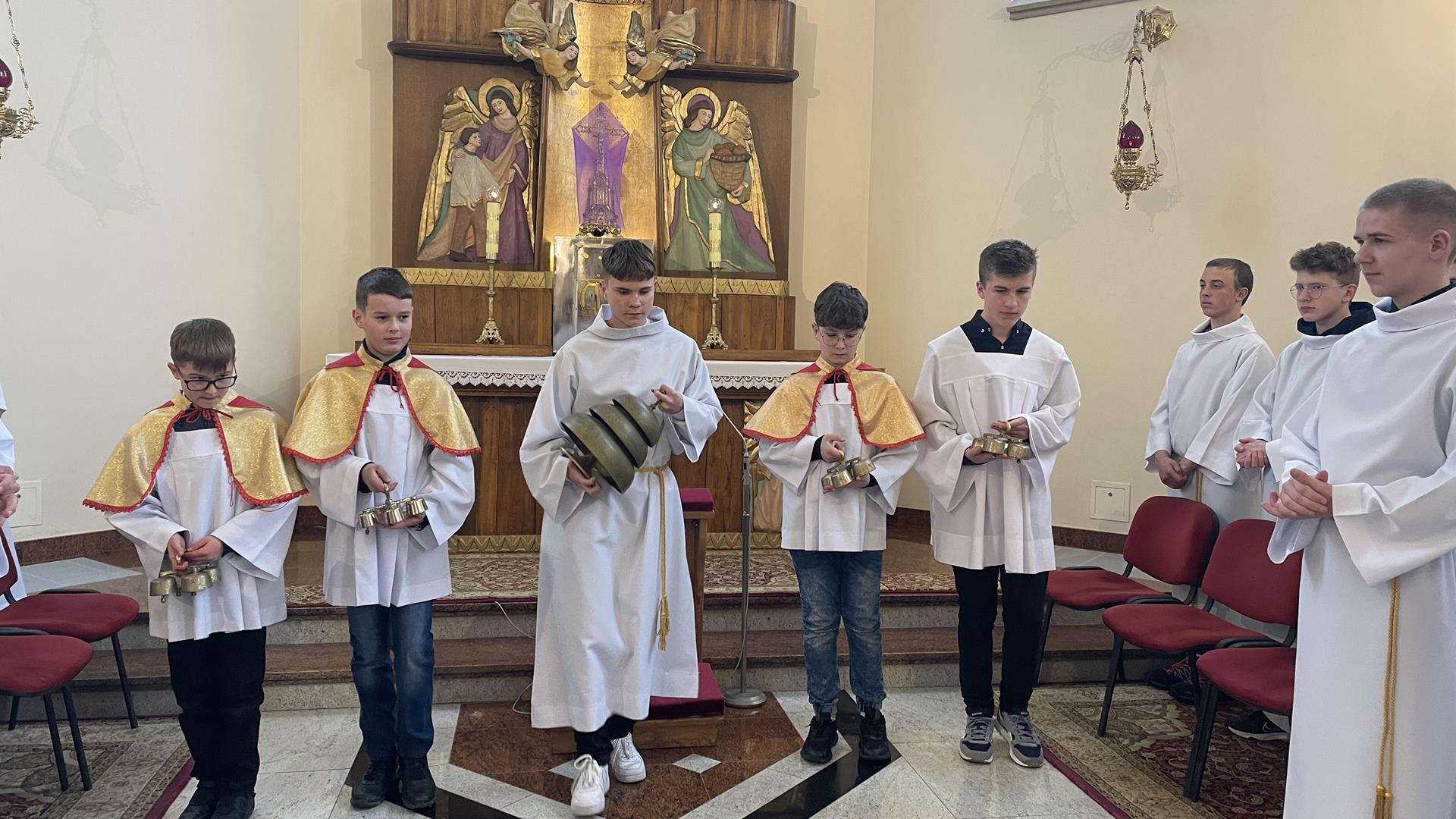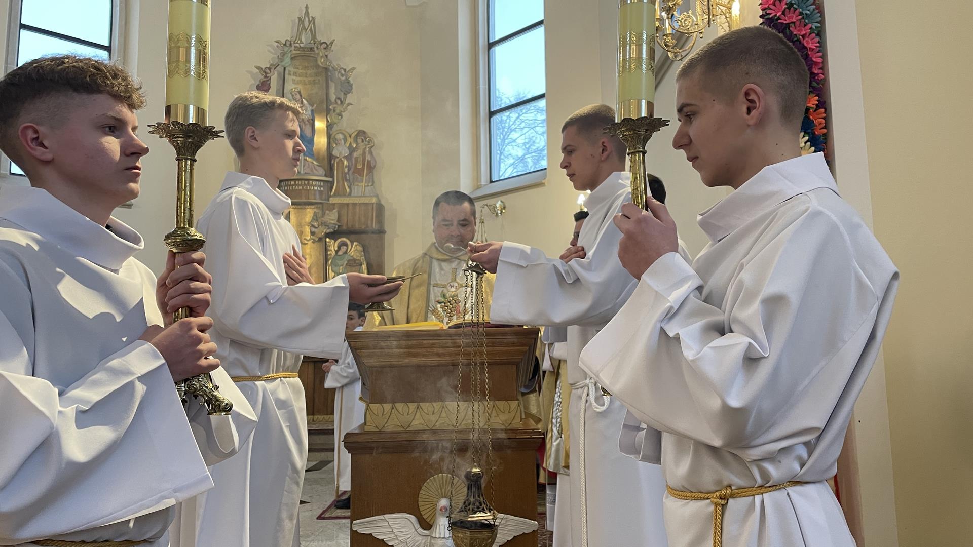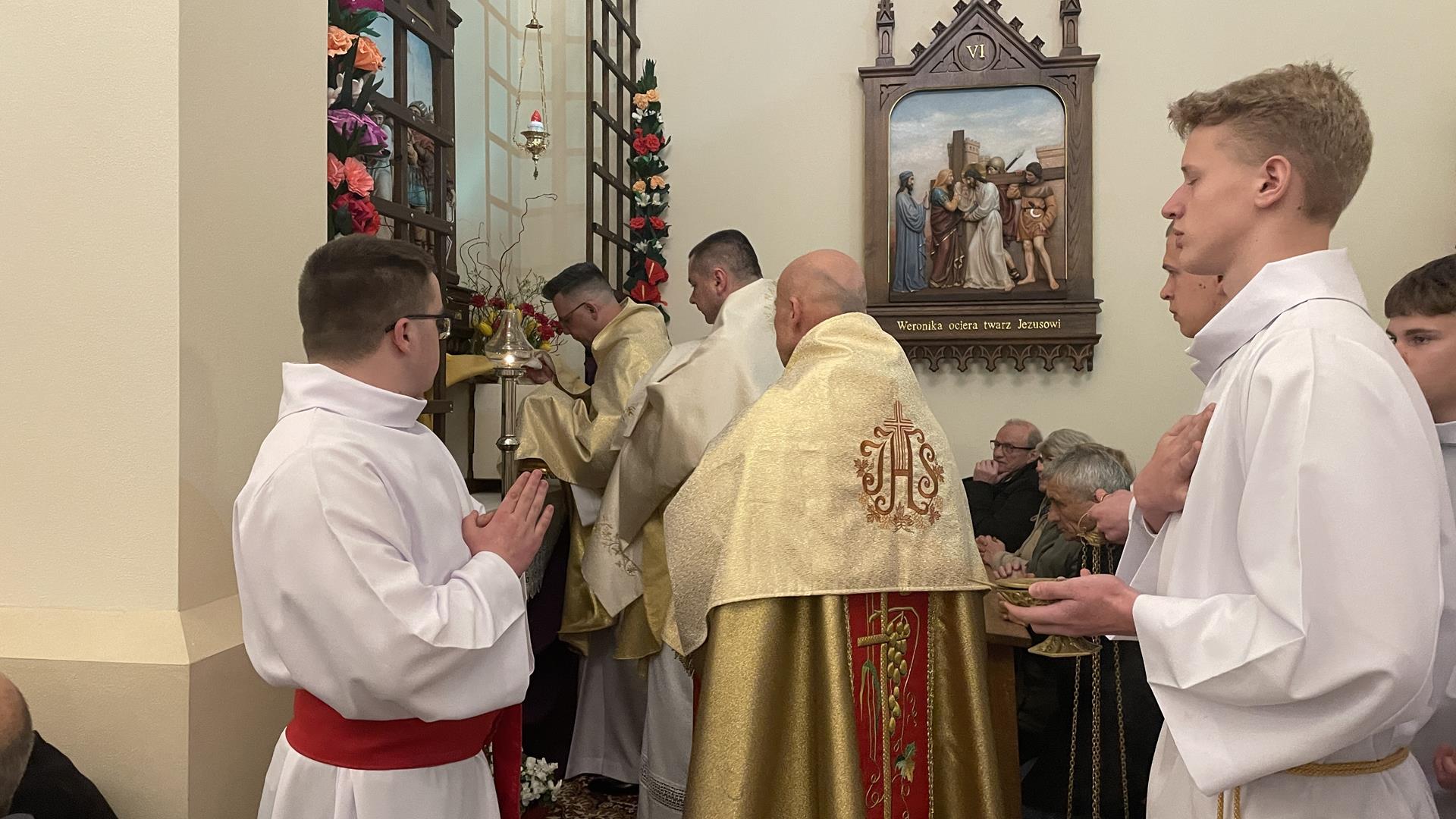 Wielkoczwartkowa Msza Święta Wieczerzy Pańskiej rozpoczyna w Kościele Triduum Paschalne - coroczny obrzęd męki, śmierci i zmartwychwstania Chrystusa. To dzień ustanowienia sakramentów Eucharystii i kapłaństwa. Z tej okazji w czasie uroczystej celebry przedstawiciele parafii złożyli kapłanom życzenia. Po przeniesieniu Pana Jezusa do Ciemnicy rozpoczęła się adoracja.
