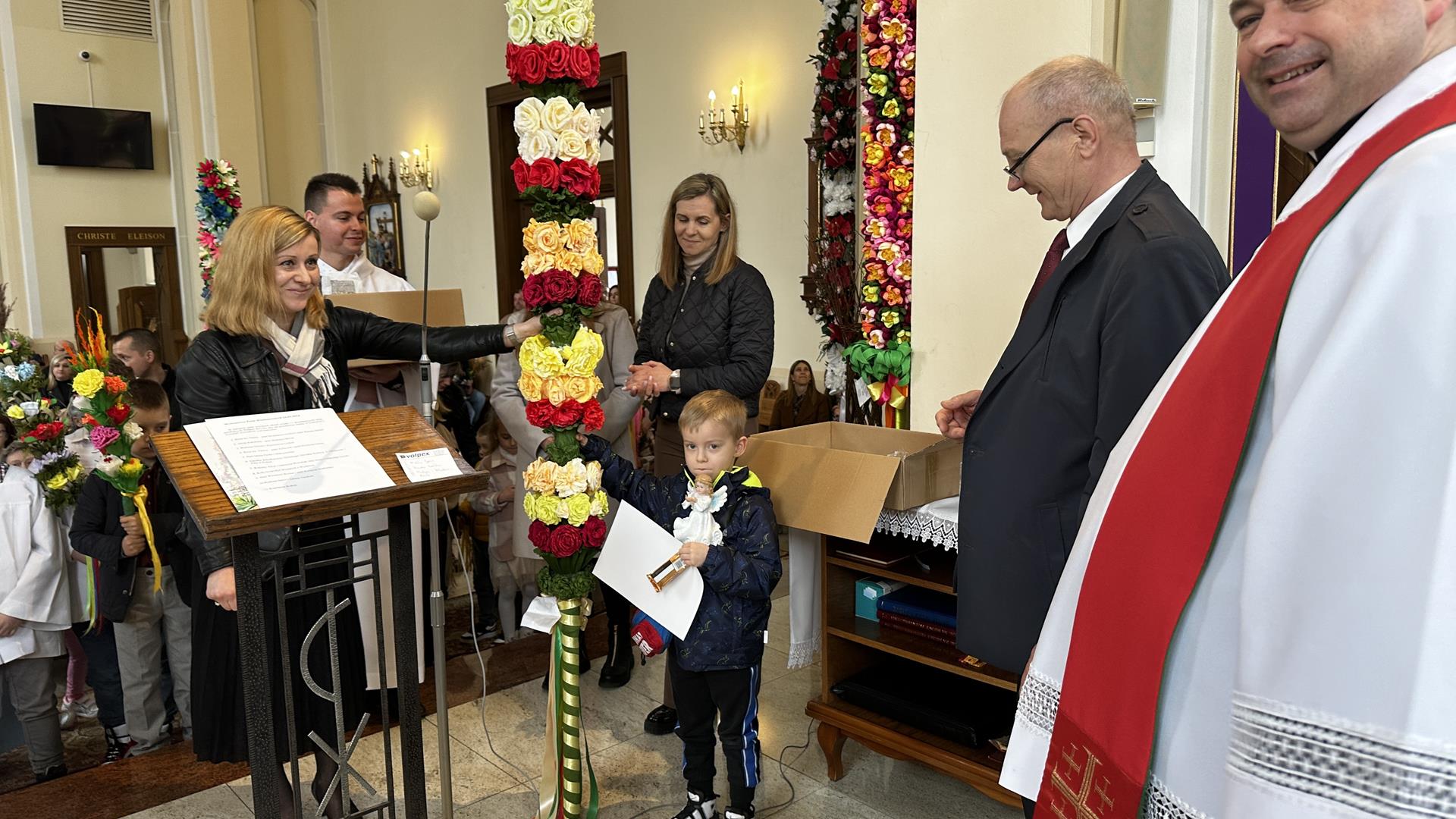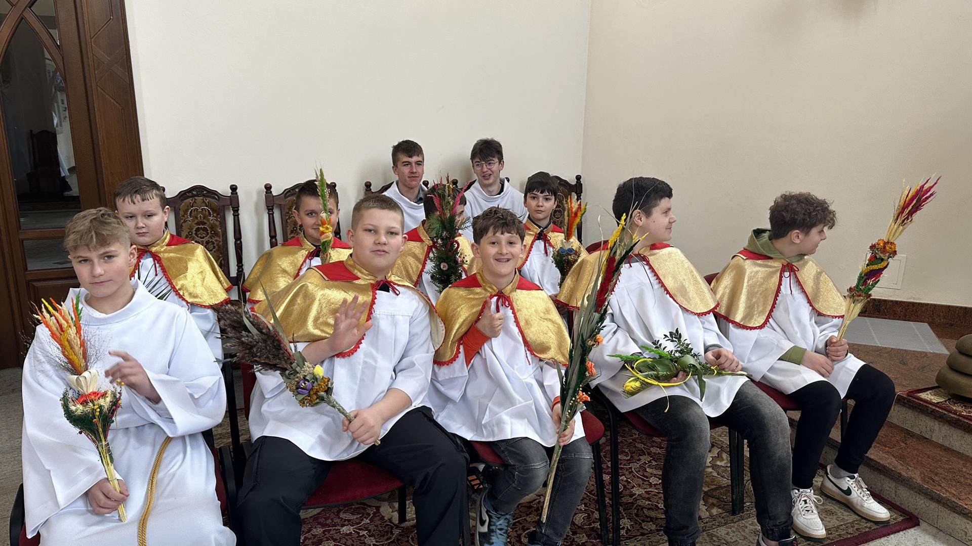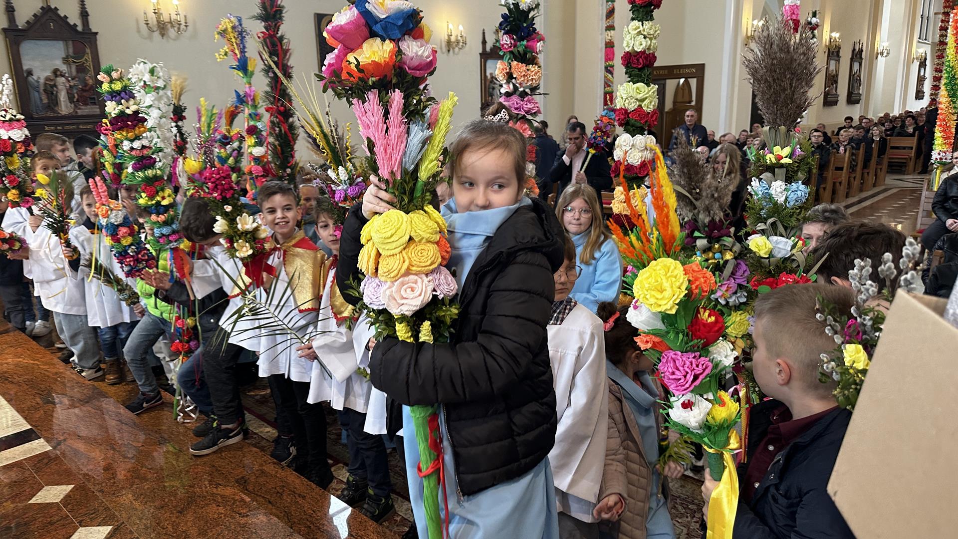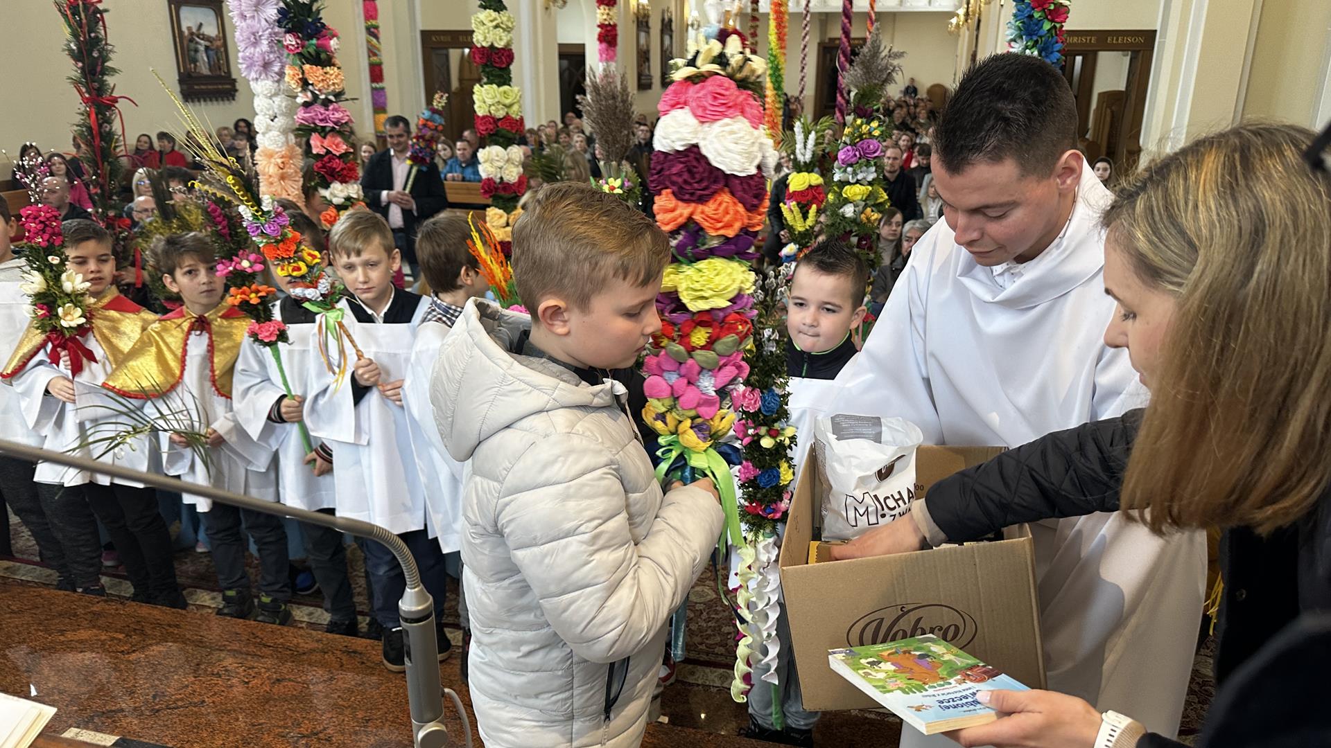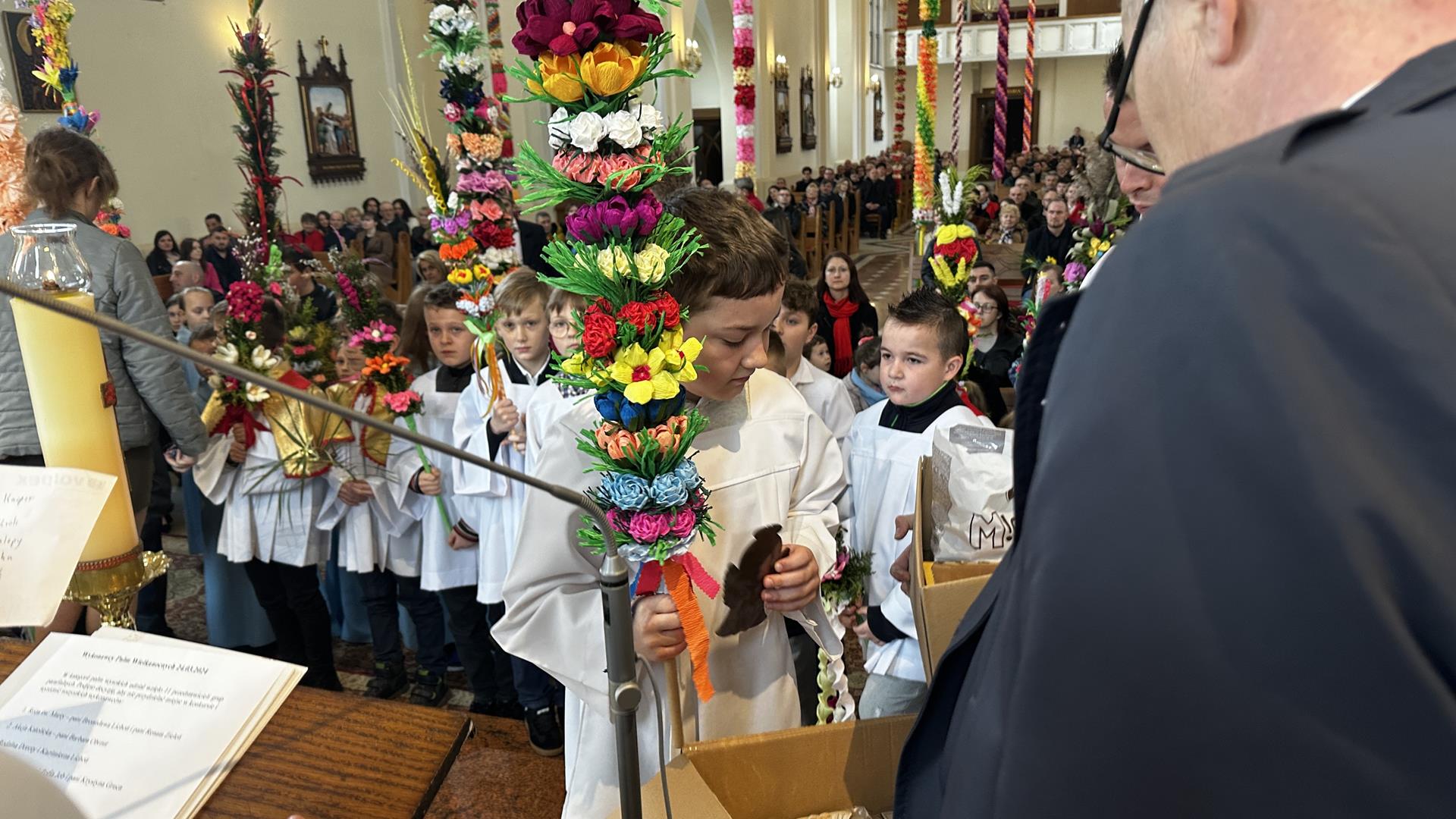 Niedziela Palmowa rozpoczyna w Kościele Wielki Tydzień. W czasie Mszy Świętej o godzinie 9:00 miał miejsce obrzęd poświęcenia palm. Po Eucharystii odbył się konkurs palm niskich do 3 metrów zorganizowany przez Akcję Katolicką. Pierwsze miejsce zajął Tymon Matuła, drugie miejsce zajęła Karolina Iwańska, a trzecie Nikodem Potok i Martyna Potok. Pierwsze cztery wyróżnienia otrzymali: Zofia Broda, Aleksandra Gryzło, Kamil Turek i Gabriela Zięba. W tym roku również jedenastu przedstawicieli grup parafialnych wykonało palmy wysokie 6 metrów:
