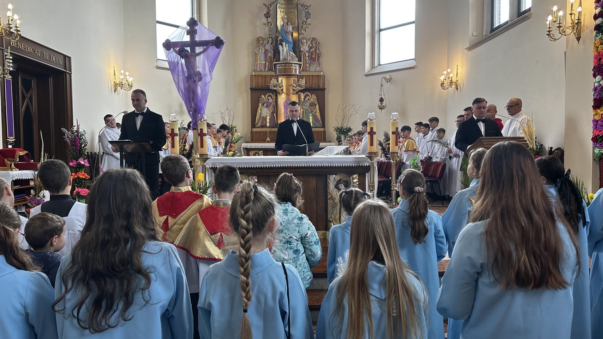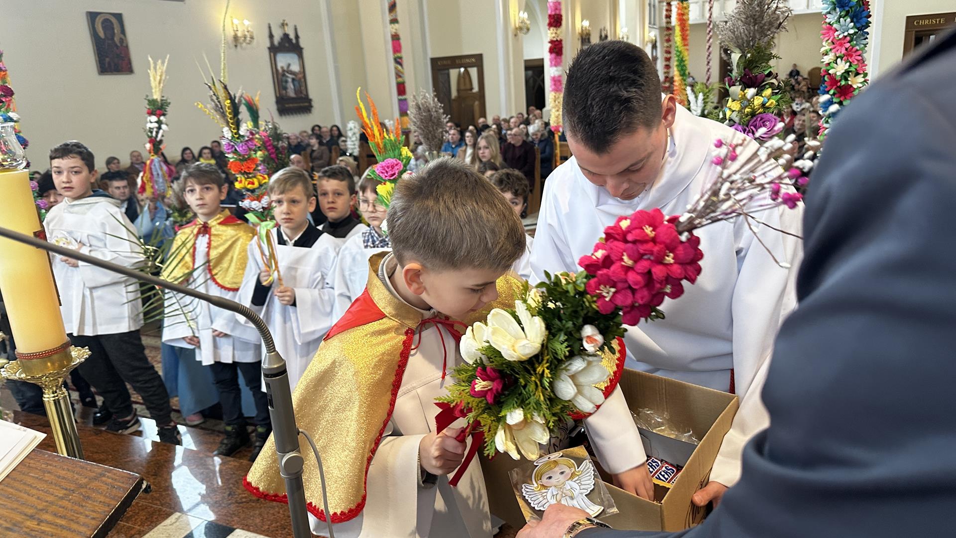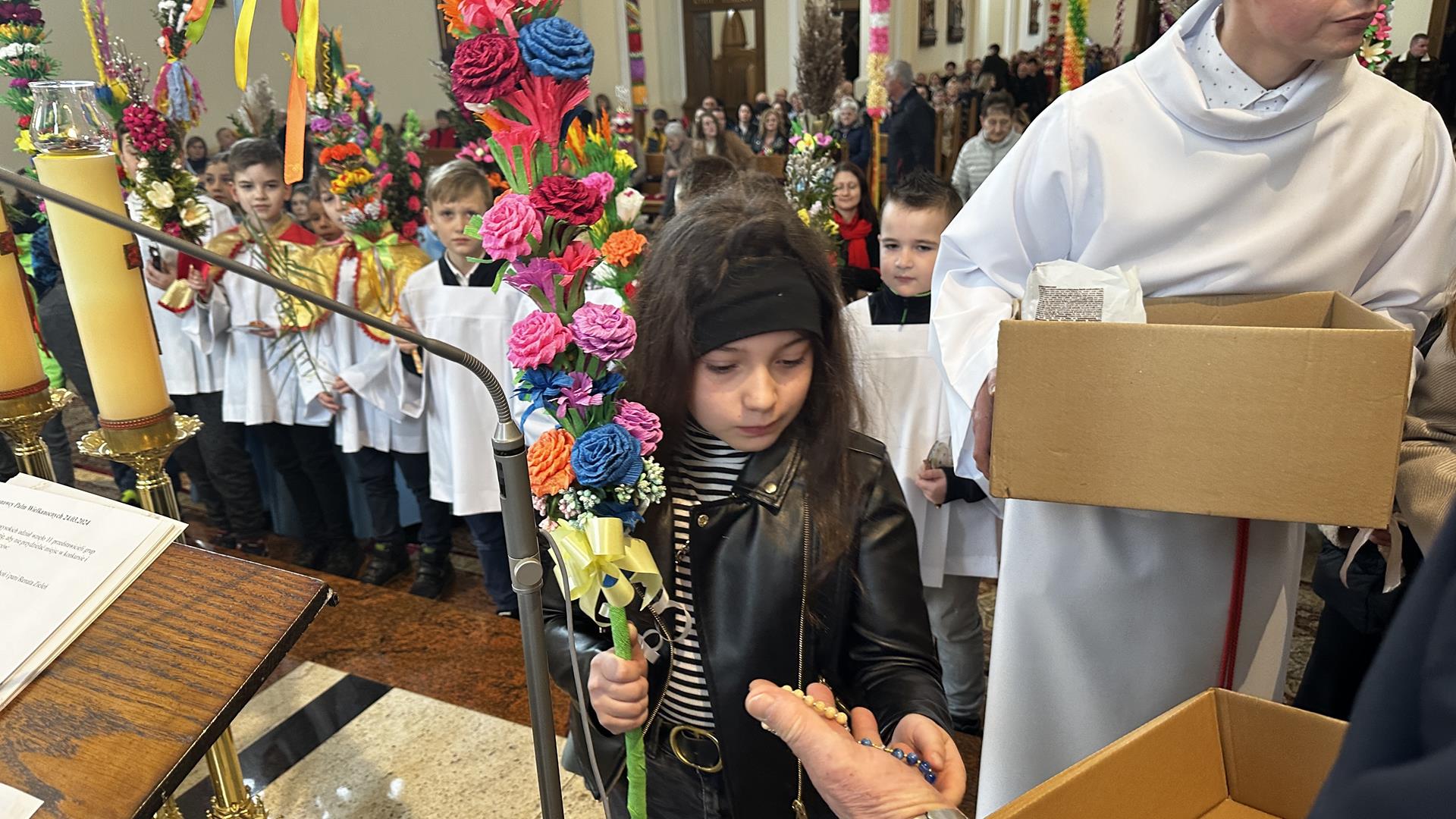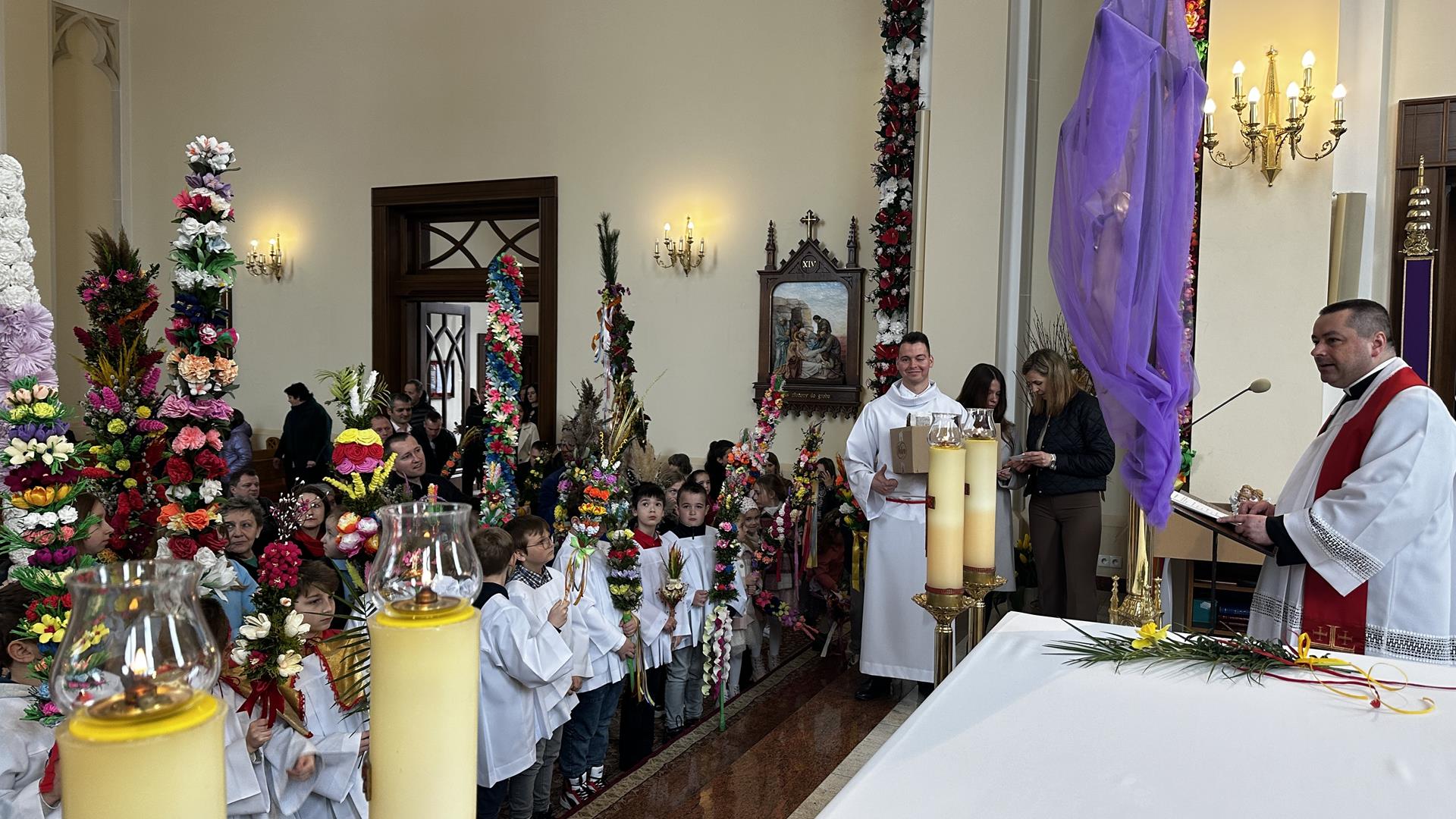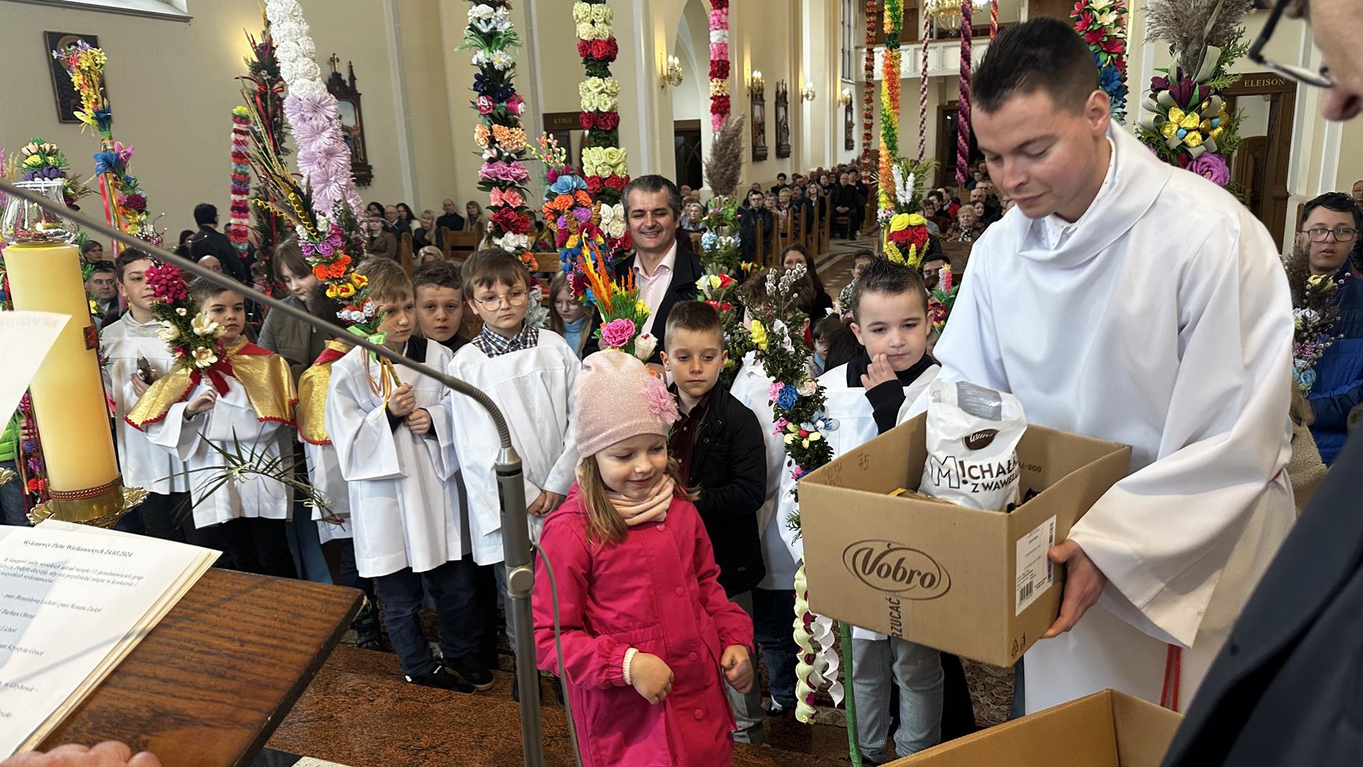 Niedziela Palmowa rozpoczyna w Kościele Wielki Tydzień. W czasie Mszy Świętej o godzinie 9:00 miał miejsce obrzęd poświęcenia palm. Po Eucharystii odbył się konkurs palm niskich do 3 metrów zorganizowany przez Akcję Katolicką. Pierwsze miejsce zajął Tymon Matuła, drugie miejsce zajęła Karolina Iwańska, a trzecie Nikodem Potok i Martyna Potok. Pierwsze cztery wyróżnienia otrzymali: Zofia Broda, Aleksandra Gryzło, Kamil Turek i Gabriela Zięba. W tym roku również jedenastu przedstawicieli grup parafialnych wykonało palmy wysokie 6 metrów: