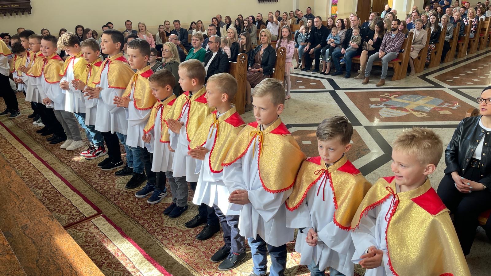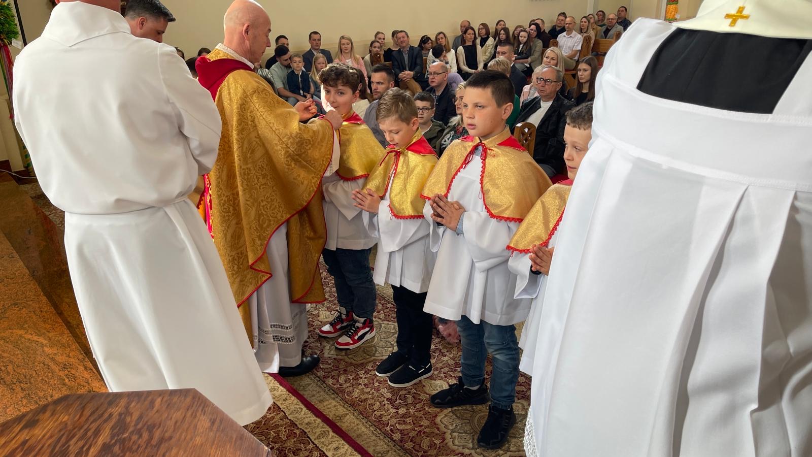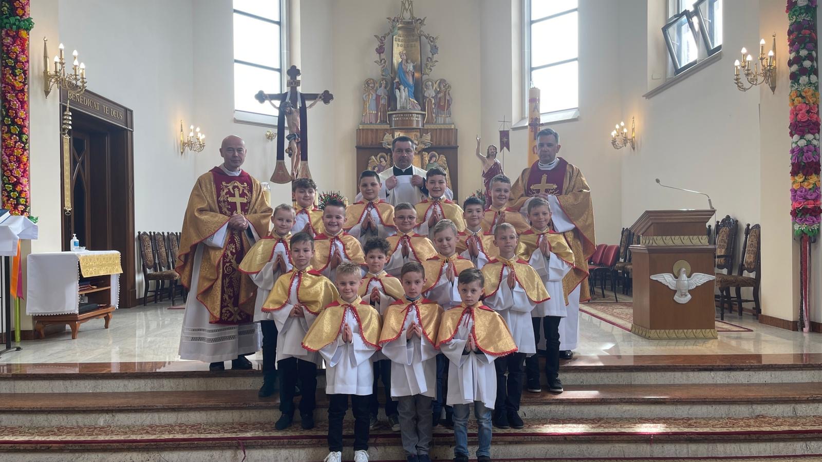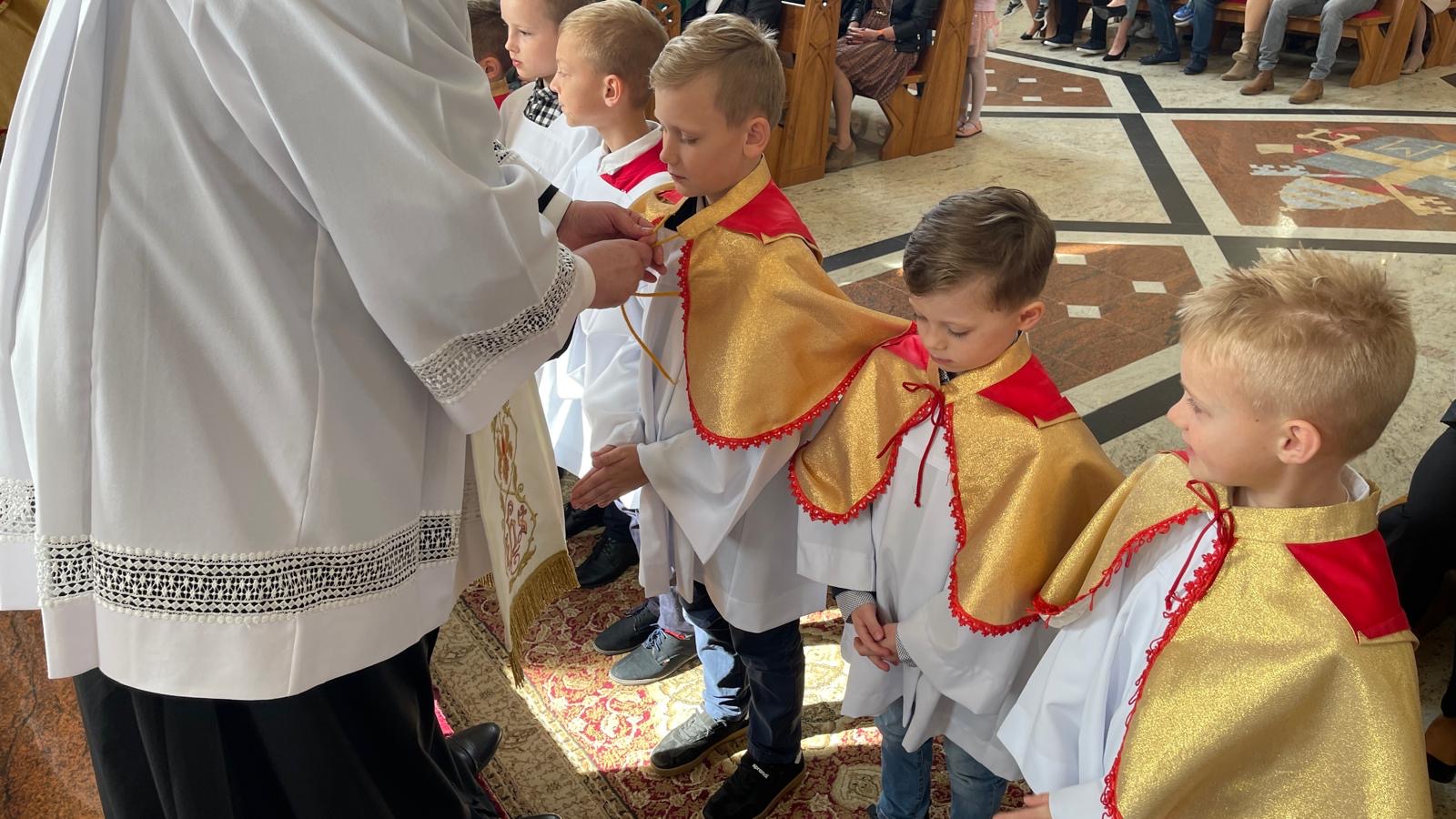 W III Niedzielę Wielkanocną podczas uroczystej Mszy Świętej o godzinie 9.00 Ksiądz Proboszcz przyjął 17 aspirantów do grona ministrantów naszej parafii. Nowi ministranci otrzymali specjalne legitymacje i mogą pełnić służbę przy ołtarzu. Wszystkim chłopcom życzymy wytrwałości w podjętych zobowiązaniach.
