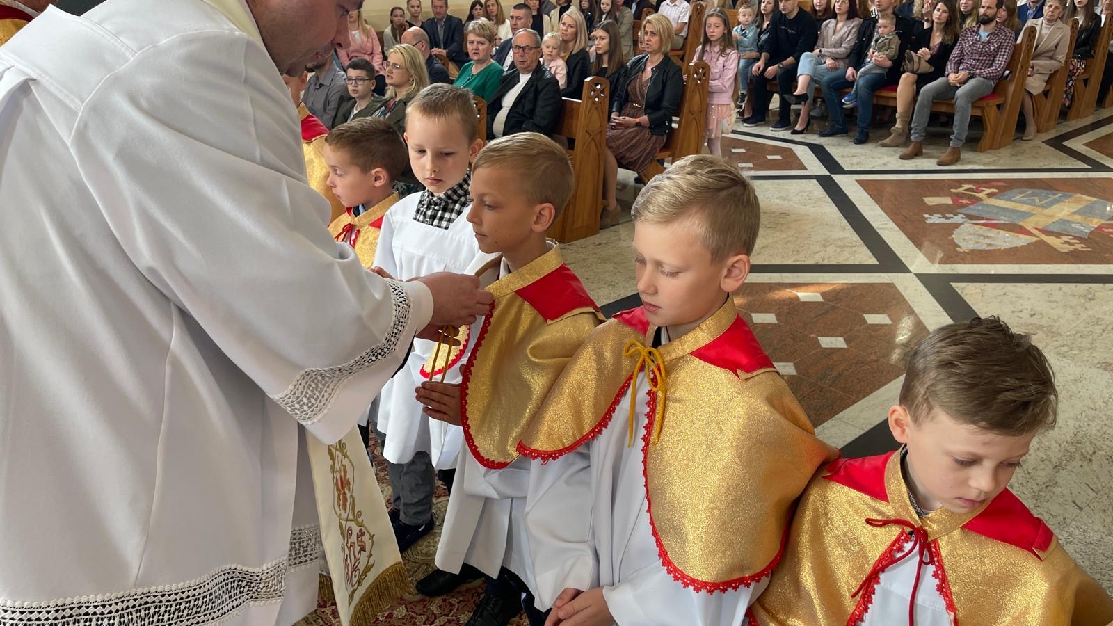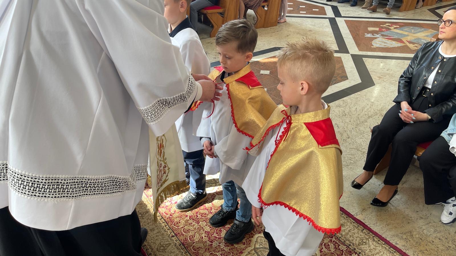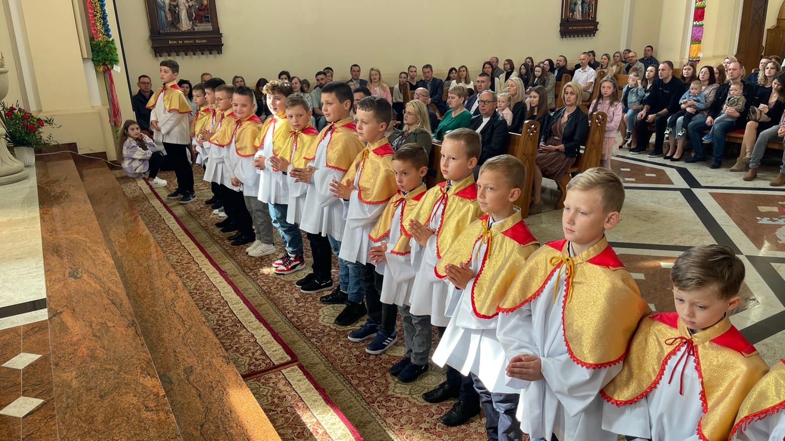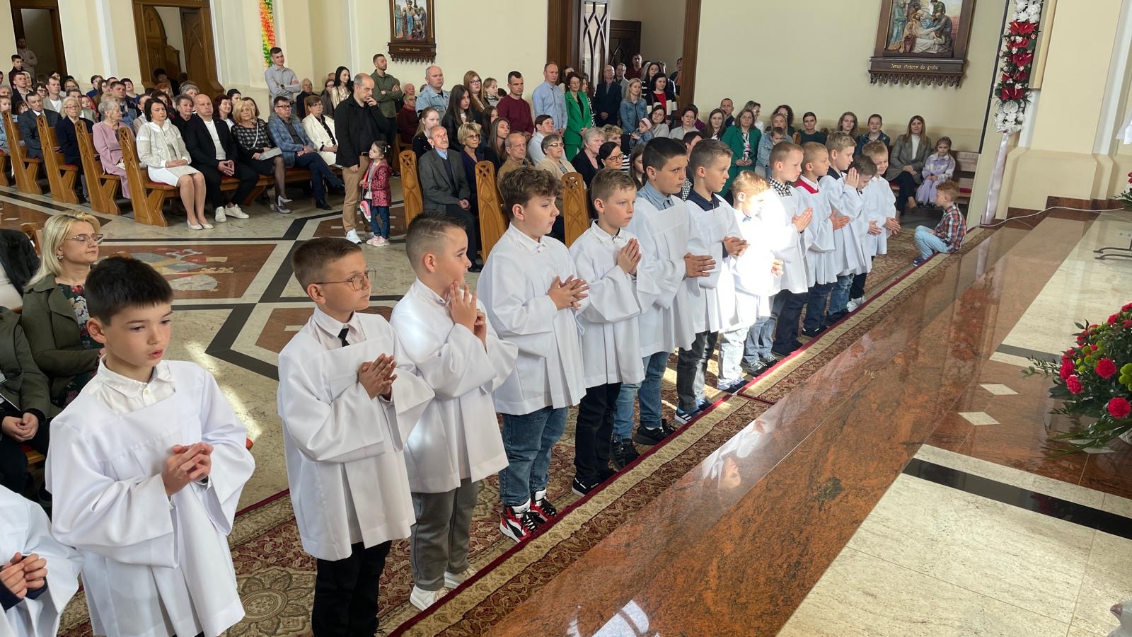 W III Niedzielę Wielkanocną podczas uroczystej Mszy Świętej o godzinie 9.00 Ksiądz Proboszcz przyjął 17 aspirantów do grona ministrantów naszej parafii. Nowi ministranci otrzymali specjalne legitymacje i mogą pełnić służbę przy ołtarzu. Wszystkim chłopcom życzymy wytrwałości w podjętych zobowiązaniach.