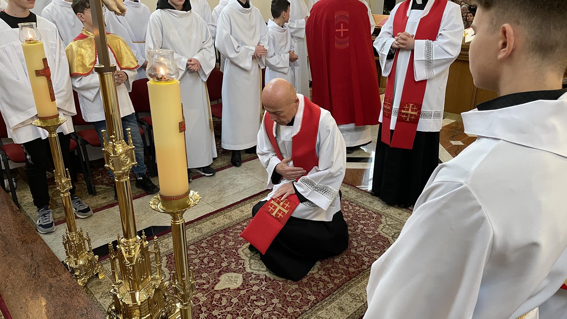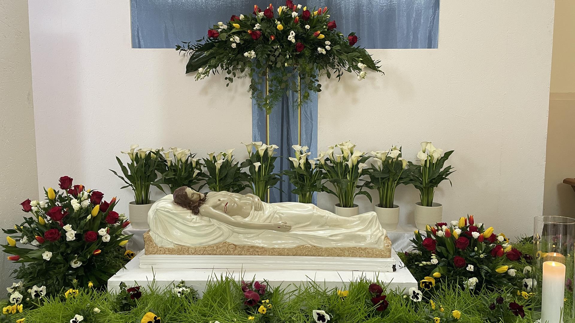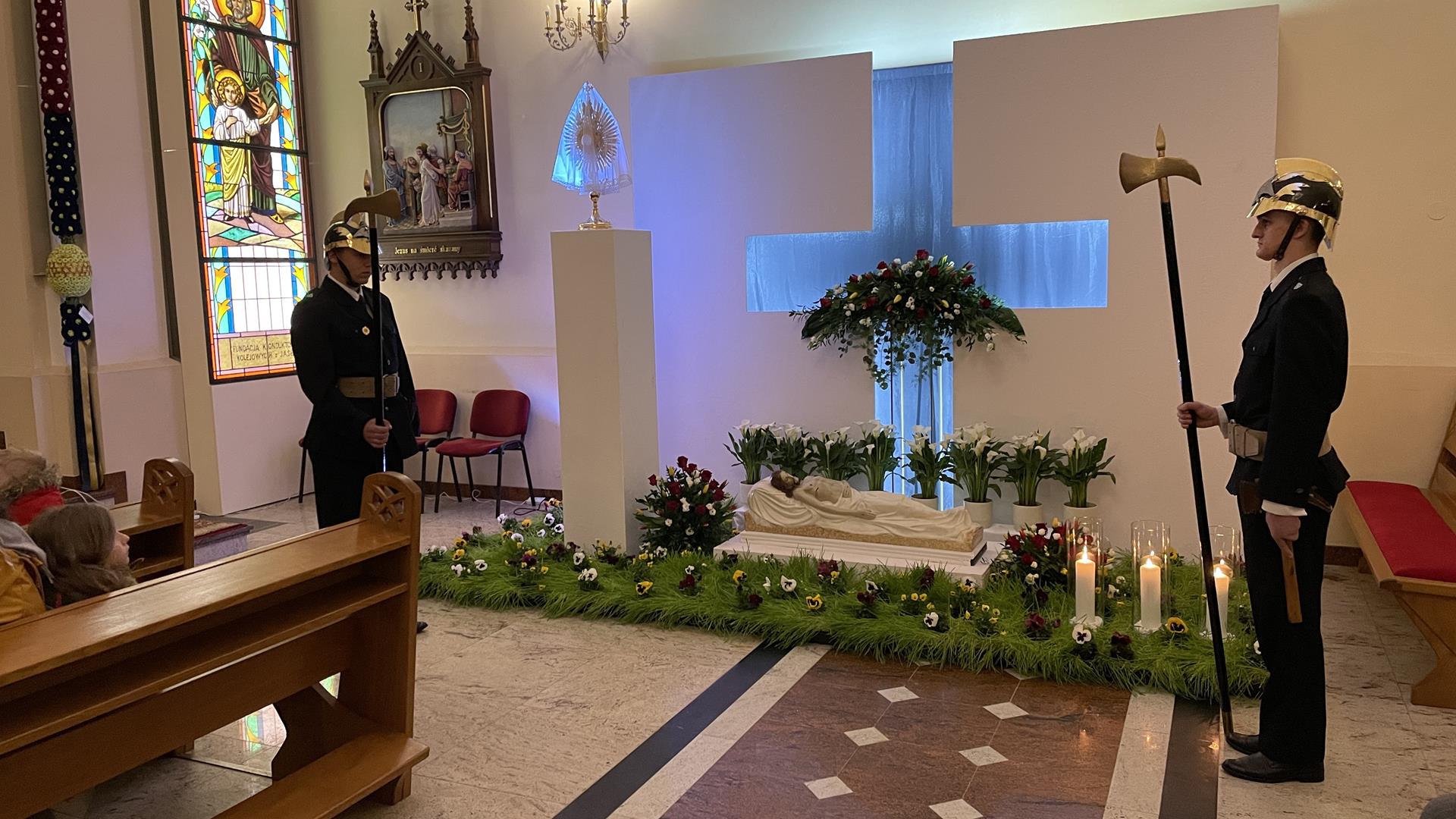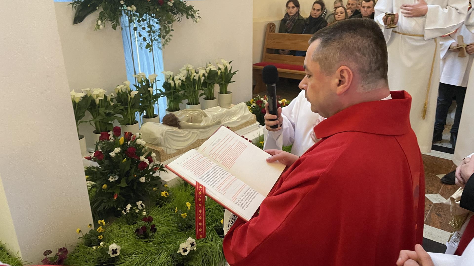 Wielki Piątek to dzień, w którym w Kościele nie jest sprawowana Msza Święta. Celebruje się nabozeństwo Drogi Krzyżowej, a wieczorem Liturgię Męki Pańskiej w której centrum jest adoracja Krzyża. Na koniec nabozeństwa nastąpiło przeniesienie Pana Jezusa do grobu i rozpoczęło sie czuwanie.