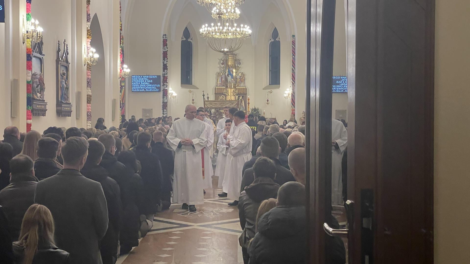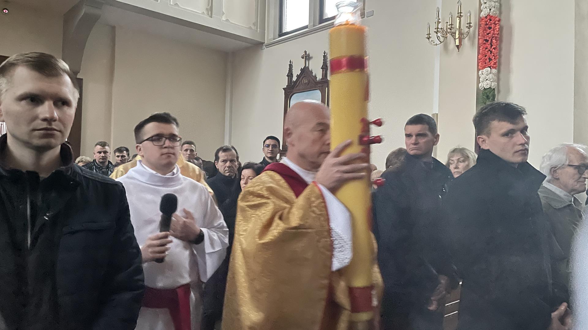 W Wielką Sobotę od rana w naszym kościele odbywała się adoracja Pana Jezusa w Grobie, przy którym wartę pełnili strażacy. Kapłani święcili również pokarmy na stół wielkanocny. Wieczorem rozpoczęła się Wigilia Paschalna, której kulminacyjnym momentem była procesja rezurekcyjna.