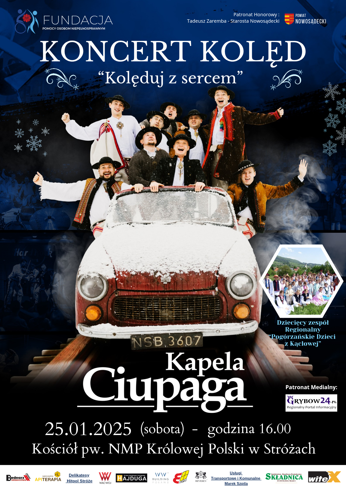 Serdecznie zapraszamy wszystkich na koncert kolęd pt. „Kolęduj z Sercem”, w którym wystąpią: Dziecięcy Zespół Regionalny - Pogorzańskie Dzieci z Kąclowej oraz Kapela Ciupaga.